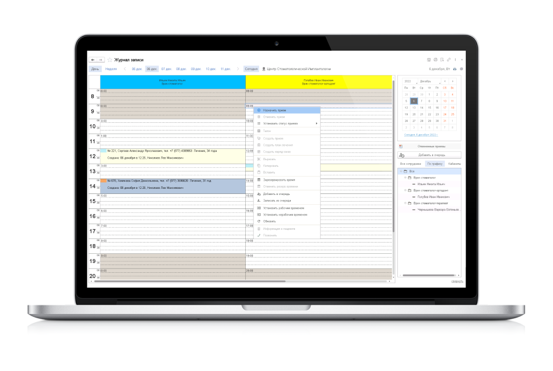 Мобильное приложение для устройств Андроид и iOS на мобильной платформе 1С:Предприятие 8 позволяет использовать в работе смартфон или планшет.С помощью приложения врач-стоматолог имеет доступ к журналу записей, графику работы, истории приемов пациентов.
