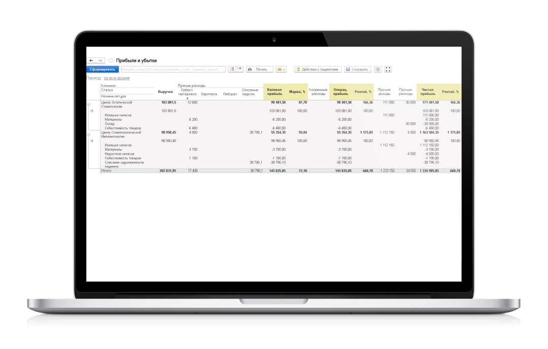 Контуры, которые автоматизирует 1С: Медицина Стоматология: