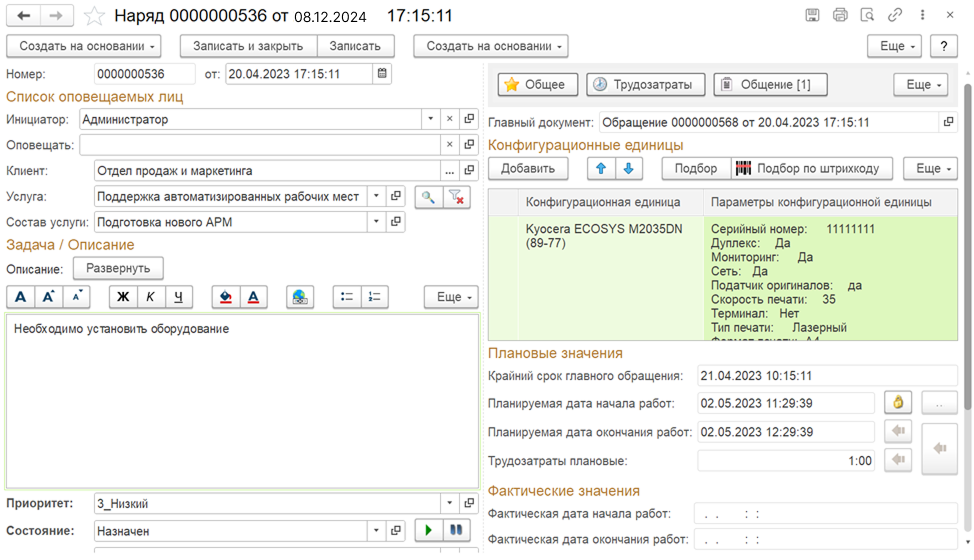 Учет нарядов на выполнение работ, планирование ресурсов и управление ими в разрезе услуг и клиентов.