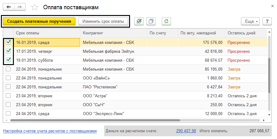 Если перейти по данной гиперссылке, то в открывшемся окне можно будет указать или изменить сроки оплаты. На примере указан срок оплаты конкретному поставщику.
