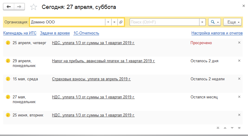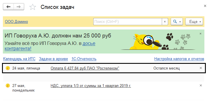 После таких манипуляций в списке задач будет появляться напоминание о необходимости оплаты. Ознакомиться с ним можно в разделе «Главное» меню «Задачи».