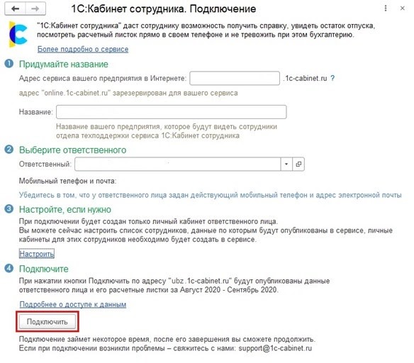 Как подключить сервис 1С:Кабинет сотрудника в программе 1С:ЗУП ред. 3.1